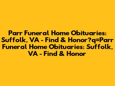 Parr Funeral Home Obituaries: Suffolk, VA - Find & Honor