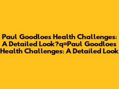Unveiling the Details: What Ails Paul Goodloe?