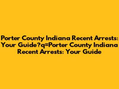 avigating recent arrests in Porter County, Indiana, can be a complex process. Whether you're trying to locate a loved one, stay informed about community safety, or simply understand the legal procedures, having access to clear and updated information is essential. This guide aims to provide you with everything you need to know about recent arrests in Porter County, including where to find the information, how to interpret it, and additional resources that can help. Porter County, like many other jurisdictions, makes arrest information publicly available to ensure transparency and accountability within the legal system. However, the way this information is presented and accessed can vary, making it important to understand the specific processes in place within Porter County. We'll explore the various online resources, official websites, and potential third-party platforms where arrest records are commonly published, ensuring you have a comprehensive overview of where to look. Stay tuned as we delve into the specifics of accessing and understanding arrest information in Porter County, Indiana.