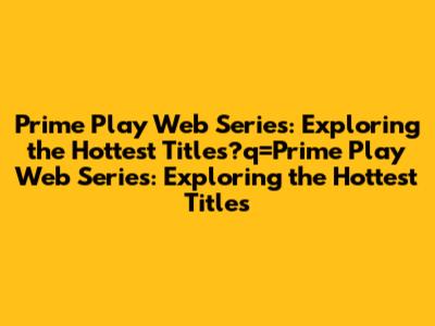 What devices can I watch Prime Play web series on? You can watch them on a wide range of devices, including smart TVs, computers, tablets, and smartphones. Just make sure your device is compatible with the Prime Play app or website.