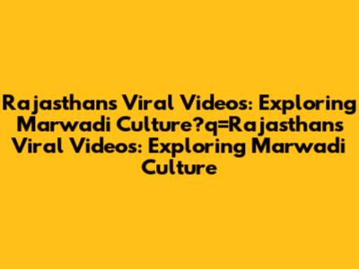 Q1: What is a Marwadi viral video? A: A Marwadi viral video is a video that originates from the Marwar region of Rajasthan or features Marwadi culture, often gaining significant online popularity due to its entertaining or informative content.