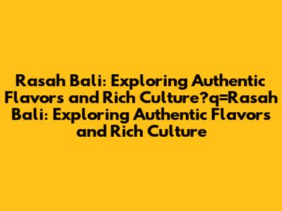 Rasah Bali: Exploring The Authentic Taste And Rich Culture