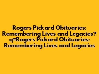 Rogers Pickard Obituaries: Honoring Lives And Legacies