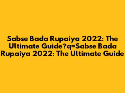 Sabse Bada Rupaiya 2022: The Ultimate Guide