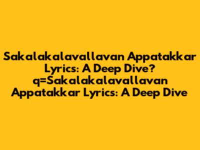 Sakalakalavallavan Appatakkar Lyrics: A Deep Dive