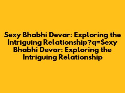 Sexy Bhabhi Devar: Exploring The Intriguing Relationship