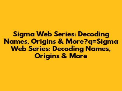 Q: Are there any well-known web series named "Sigma"? A: While it can be challenging to compile a comprehensive list due to the dynamic nature of web series, there are examples like "Sigma" (2016) and "Sigma" (2017).