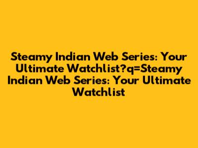 Steamy Indian Web Series: Your Ultimate Watchlist