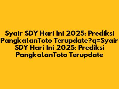 Syair SDY Hari Ini 2025: Prediksi PangkalanToto Terupdate