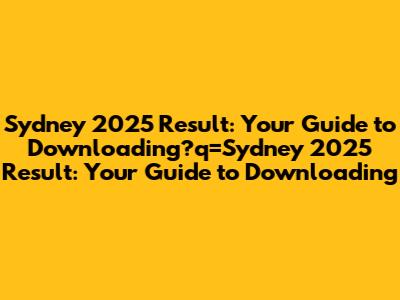 Sydney 2025 Result: Your Guide To Downloading