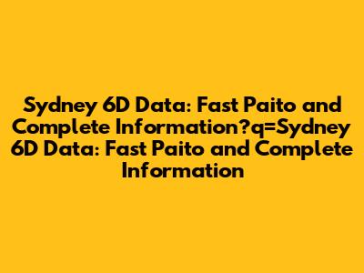 Are you looking for the latest Sydney 6D data and a fast paito? You've come to the right place! In this article, we will dive deep into everything you need to know about Sydney 6D, including how to access the most recent results, understand paito charts, and use this data to inform your strategies. Let's get started!