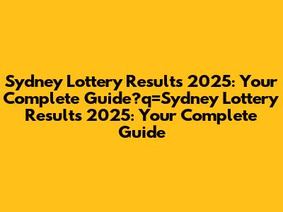 Sydney Lottery Results 2025: Your Complete Guide