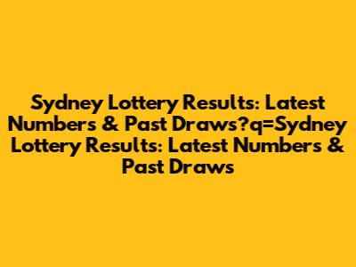 Sydney Lottery Results: Latest Numbers & Past Draws