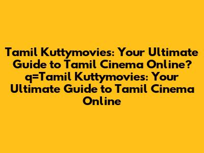 Tamil Kuttymovies: Your Guide To Tamil Cinema Online