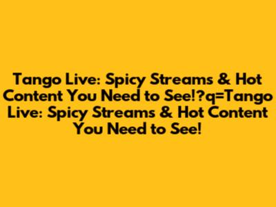 Tango Live: Spicy Streams & Hot Content You Need To See!