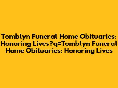 Tomblyn Funeral Home Obituaries: Honoring Lives