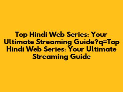 Top Hindi Web Series: Your Ultimate Streaming Guide