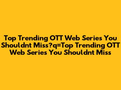 Top Trending OTT Web Series You Shouldn't Miss
