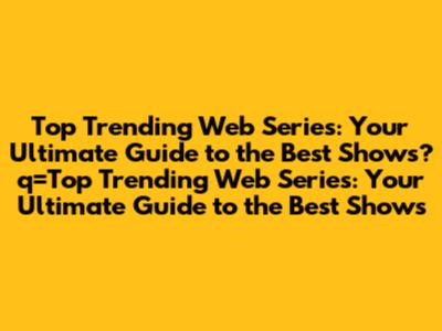 Top Trending Web Series: Your Ultimate Guide