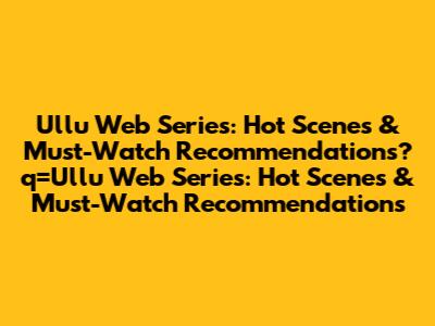 Ullu Web Series: Hot Scenes & Must-Watch Recommendations