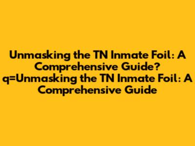 Unmasking The TN Inmate Foil: A Comprehensive Guide