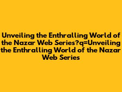 Unveiling The Enthralling World Of The Nazar Web Series
