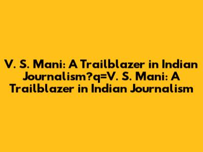Who was V. S. Mani? V. S. Mani was a pioneering Indian journalist known for his insightful reporting and contributions to the field. He was a mentor and a role model for many journalists.