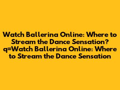 Watch Ballerina Online: Where To Stream The Dance Sensation