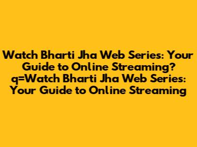 Watch Bharti Jha Web Series: Where To Stream Online