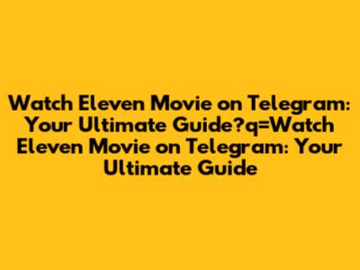 Watch Eleven Movie On Telegram: Your Ultimate Guide