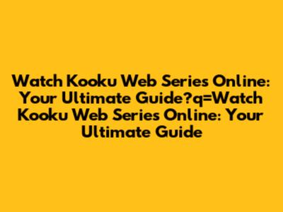 Watch Kooku Web Series Online: Your Ultimate Guide