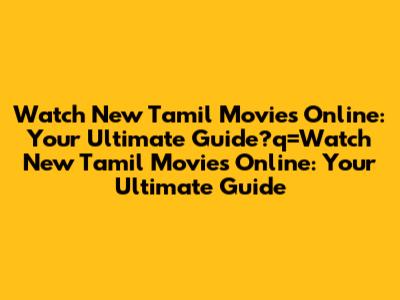 Watch New Tamil Movies Online: Your Ultimate Guide