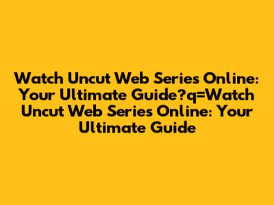 Watch Uncut Web Series Online: Your Ultimate Guide