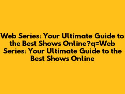 Web Series: Your Ultimate Guide To The Best Shows Online
