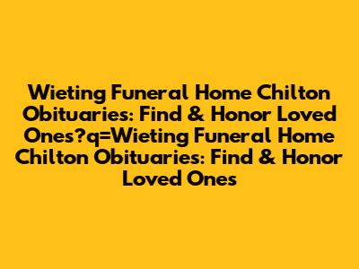 Wieting Funeral Home Chilton Obituaries: Find & Honor Loved Ones