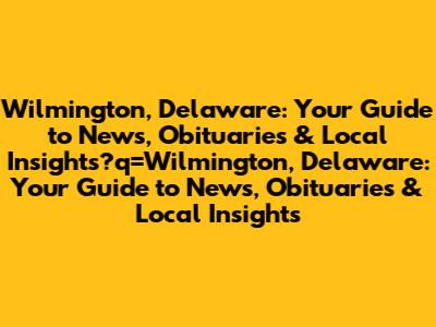 Wilmington, Delaware: Your Guide To News, Obituaries & Local Insights