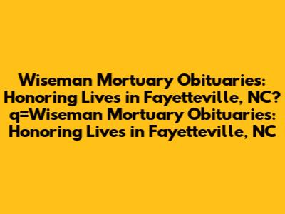 Wiseman Mortuary Obituaries: Honoring Lives In Fayetteville, NC